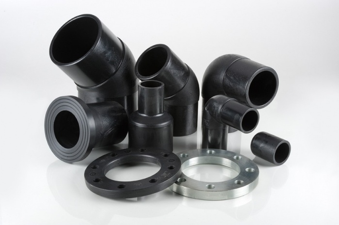 Данные изделия производятся на специальном экструзионном оборудовании, после чего проходят чистовую обработку. Полиэтиленовые фитинги свариваются с трубой стыковым способом. Также возможно их соединение посредством электросварных фитингов. Данная линейка представлена фланцевыми втулками, отводами, переходами, тройниками и заглушками